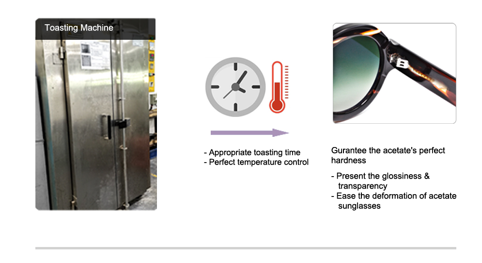 keep the same hardness for both surface and middle inside. It is the key to ease the deformation of acetate sunglasses.